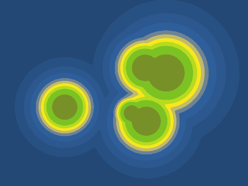 Points with a same value form a contour line. This can be used to draw shapes that change dynamically.