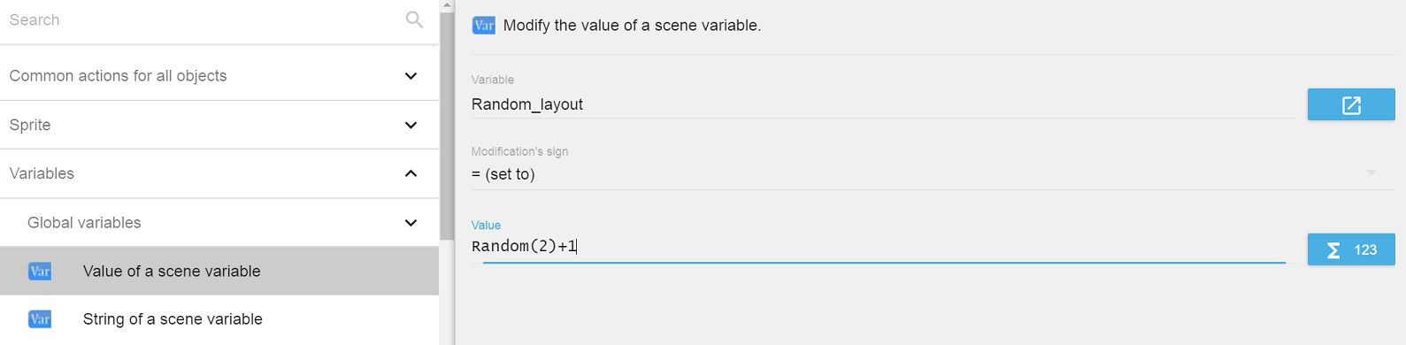 • In the Variable field, type Random_layout to create a new scene variable.